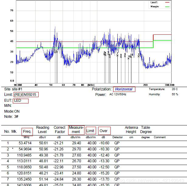 下面我們來進(jìn)入今天的主題,如何看懂EMC測(cè)試數(shù)據(jù),圖下是LED燈的測(cè)試數(shù)據(jù):